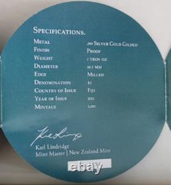 Strict limited mintage of only 5,000 coins. Obverse: Stylized design of two Hawksbill turtles (a mother and her baby), also known as the Taku, swimming along the ocean floor amidst tiny bubbles. Reverse: Effigy of Her Majesty Queen Elizabeth II and 2012 date. Produced by the New Zealand Mint under the authority of Fiji. Hawksbill turtles are found throughout the tropical waters of the Atlantic, Pacific, and Indian Oceans. Named for their narrow, pointed beak, they are also recognizable by a distinctive pattern of overlapping scales on their exquisitely colored and patterned shells. This species typically avoids deep waters, preferring coastlines and coral reefs where they can find sponges, a primary food source for these omnivores. Beautiful creatures, they make incredible migrations in order to move from feeding sites to tropical beaches that often serve as nesting grounds.Hawksbill turtles come to New Zealand every year from Fiji; although they've been sighted as far south as Cook Strait, they are mostly seen in the upper North Island of New Zealand in the clear, shallow waters of the island shelve. Like many sea turtles, hawksbills are a critically endangered species due mostly to human impact. Hawksbill eggs are still eaten around the world despite the turtle's international protected status, and they are often killed for their flesh and their stunning shells that are highly valuable in some marketplaces. A fantastically designed bullion item, this product has grown tremendously in popularity among investors in each of the four years that it's been produced because of its intricate design.