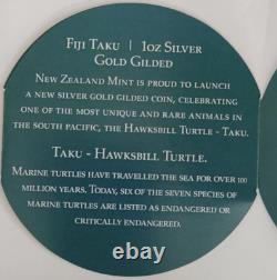 The gilded Taku coin combines the appeal of 1 oz of pure Silver with an elegant design that captures the beauty of the ocean! Nearly 3,000 of these critically endangered Takus (Hawksbill turtles) call the island nation of Fiji their home.