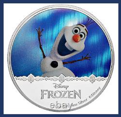 Le revers présente des images d'Olaf de. Échantillons de preuve avec finition colorisée.