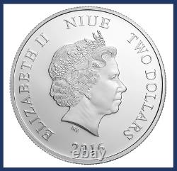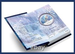 2016 Niue Nouvelle-Zélande Disney La Reine des Neiges Olaf Paquet Neuf et COA. Arrive encapsulé dans un paquet à thème de livre d'histoires La Reine des Neiges. La mintage maximale est fixée à seulement 10 000 pièces pour une distribution mondiale. 3ème pièce de la collection La Reine des Neiges - Magie des Aurores Boréales. Contient 1 once troy de. L'avers comprend le portrait de la Reine Elizabeth II.