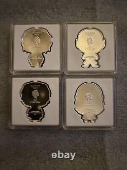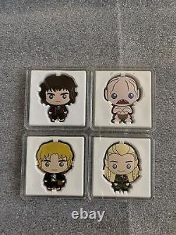 À vendre, quatre pièces de monnaie en preuve chibi du Seigneur des Anneaux. Vous recevrez les pièces visibles sur les photos.