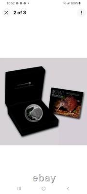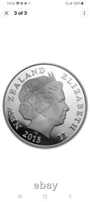 Cette pièce de monnaie en argent proof de 1 OZ de Nouvelle-Zélande de 2015 présente un magnifique design d'un oiseau kiwi brun en vol. La pièce est en argent 0,999 et est en état non circulé. C'est un excellent ajout à toute collection de pièces.