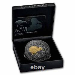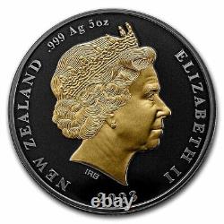Les chiffres de population combinés pour les trois taxa de tokoeka en font l'espèce de kiwi la plus nombreuse, avec plus de 30 000 oiseaux dans la nature. Pièce en argent de 5 oz avec finition en proof noir et plaquage or. Mintée à partir d'argent 0,999. Conçue par Stephen Fuller, Wellington, Nouvelle-Zélande. Édition mondiale limitée à 300 pièces.Partie du programme annuel de pièces kiwi de NZ Post. Avec une illustration de Stephen Fuller, cette pièce représente un kiwi tokoeka cherchant de la nourriture sur la plage. Le kiwi et l'effigie de la Reine Elizabeth II sont plaqués en or. Proof noir avec plaquage or. Portrait de Sa Majesté la Reine Elizabeth II par Ian Rank-Broadley, Royaume-Uni.
